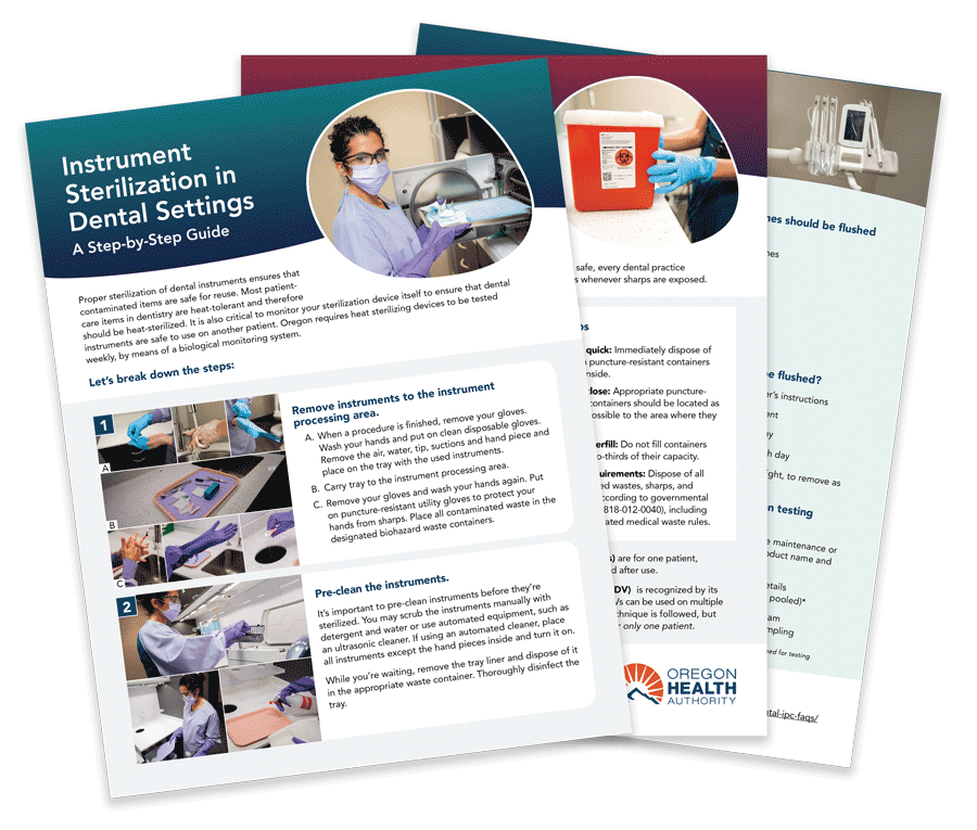 We are here to help you stay on top of your training and align with the Oregon Administrative Rule that requires certain infection control practices for dental facilities. Oregon Project Firstline offers downloadable, easy to use resources: